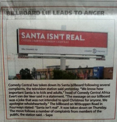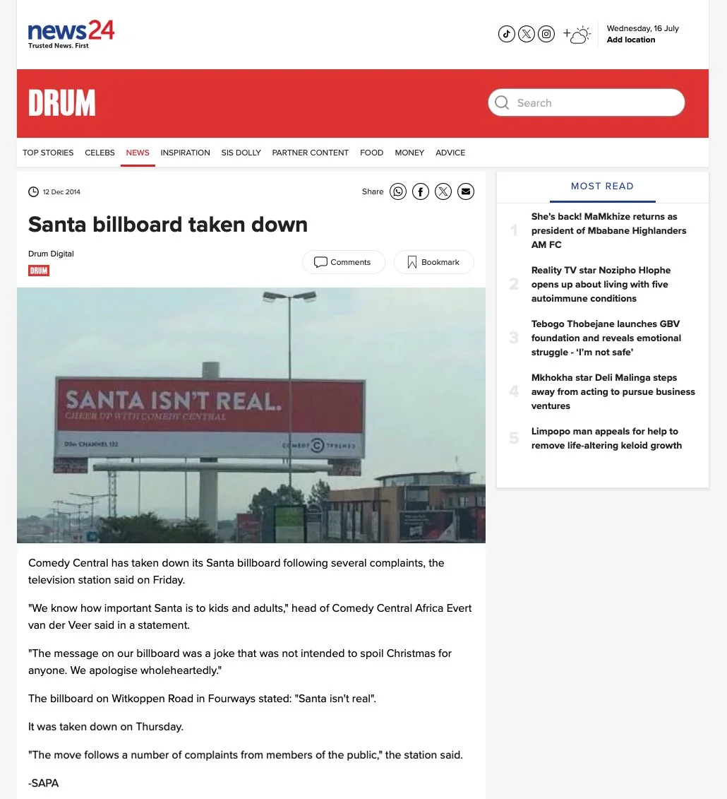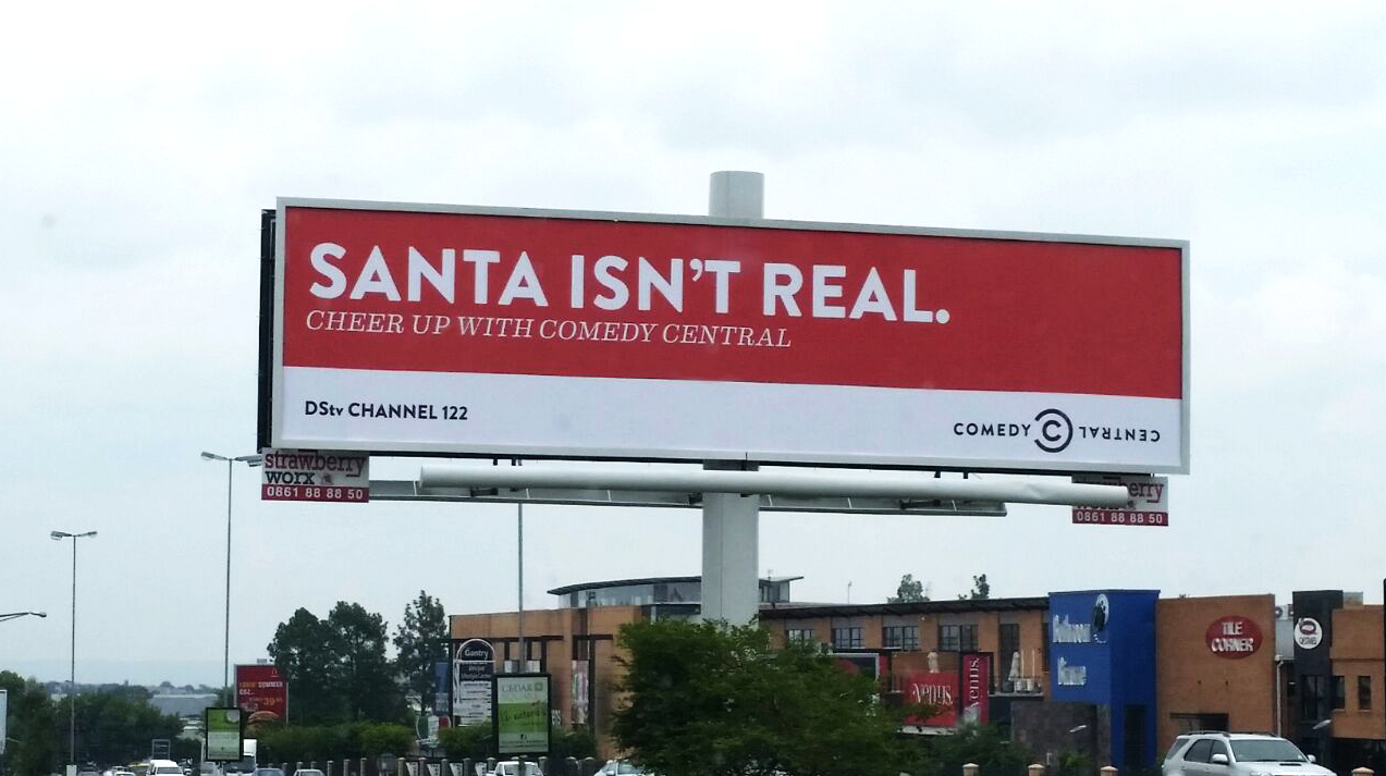 In 2014, approaching Christmas time, we were briefed to get into the festive spirit and spread some holiday cheer with Comedy Central’s first billboard in South Africa.